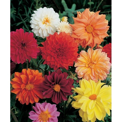 DAHLIA FIGARO MIX SEEDS - MIXED COLOUR DOUBLE FLOWERS - 50 SEEDS